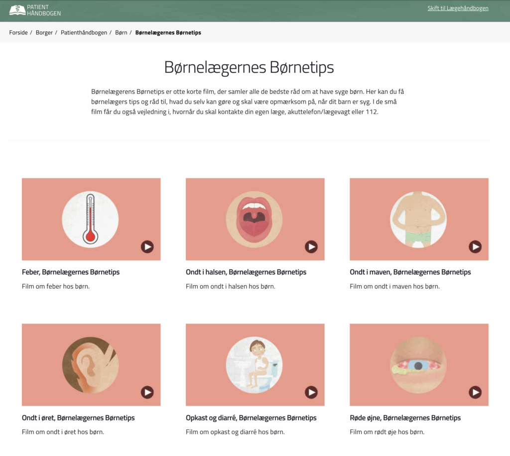 Sundhed.dk har en side med tips til sygdomme hos børn. Find den her